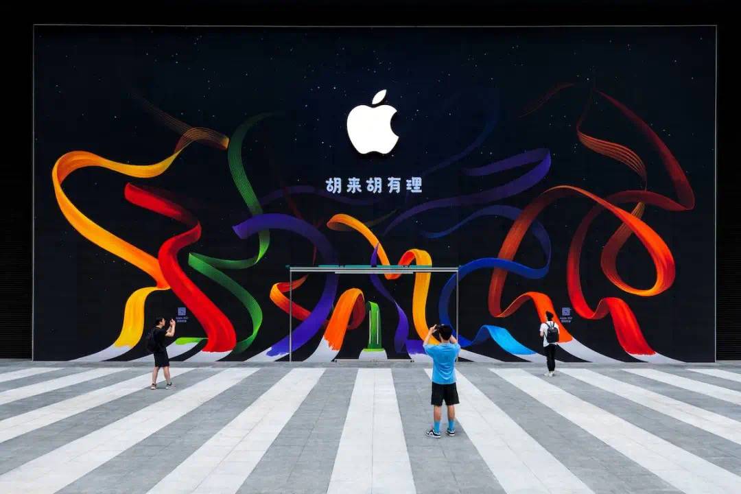 水果店长沙的围蔽针不戳:各色的彩带是根据地面的浅灰色条纹发散延展上去的