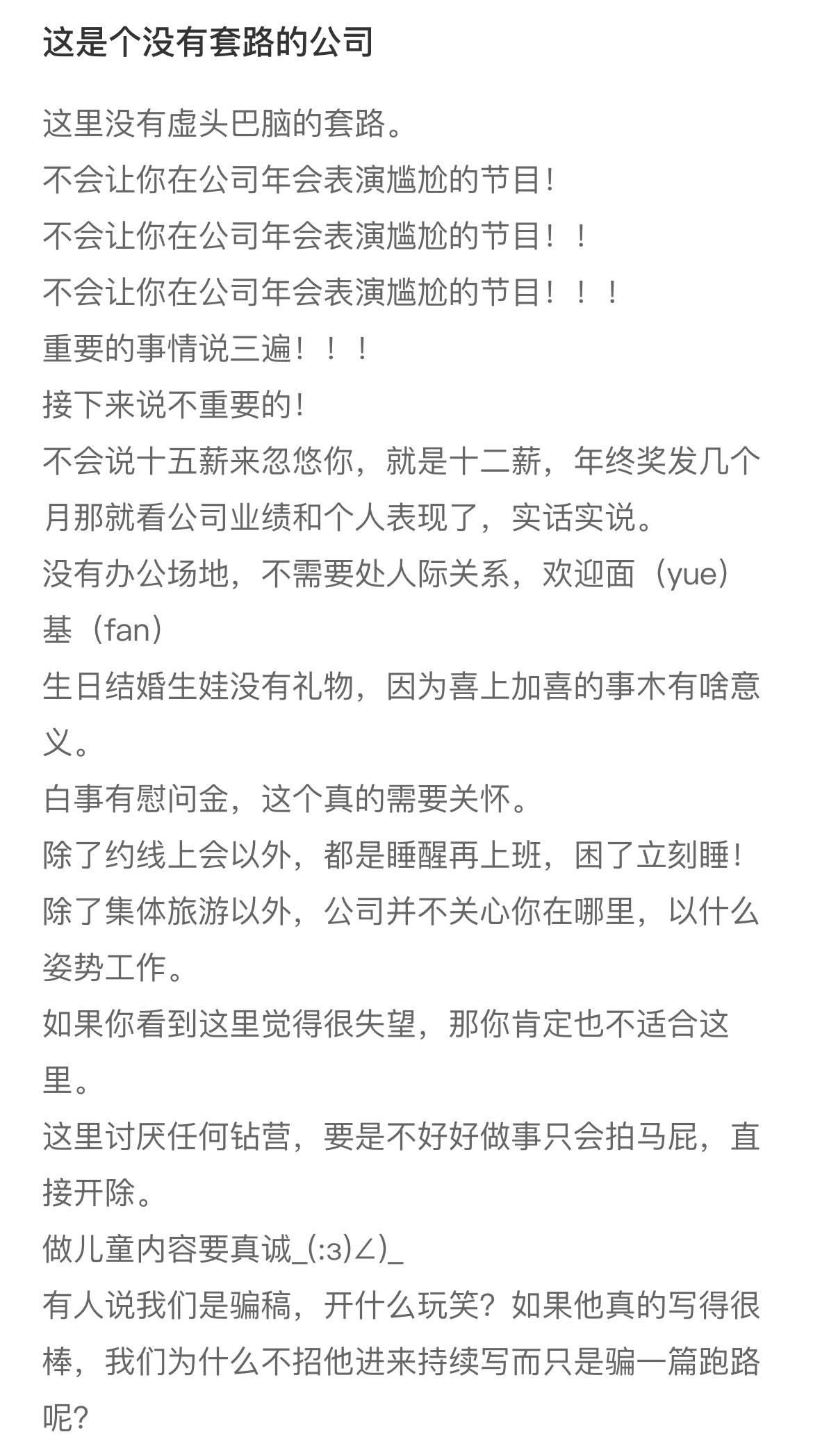 我现在看着word里自己写的加强福利,每月外出团建,下午茶零食,觉得自己像个小丑。