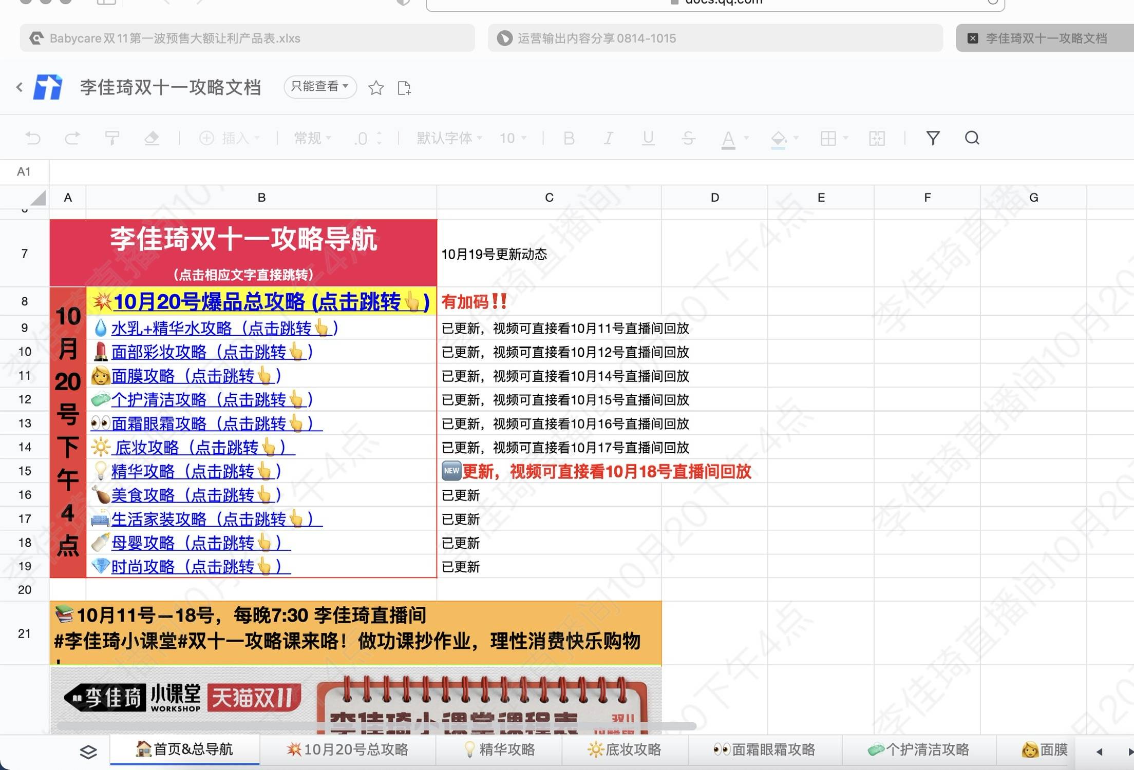 由于微信对其他平台链接的解封,最近朋友圈以及私域的群里出现了很多品牌商品内购的分享文档(腾讯、石墨、飞书)链接,特别是李佳琦招商发起的的预售文档。