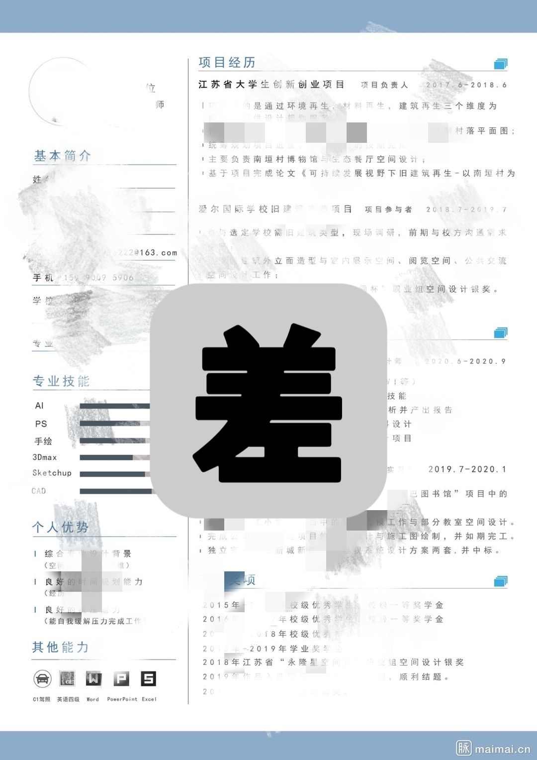 【形式上】一定要简约,不要花里胡哨,一份简历不要超过三种颜色。如果要区分那么就通过字号与加粗凸现即可。一般是上下结构。