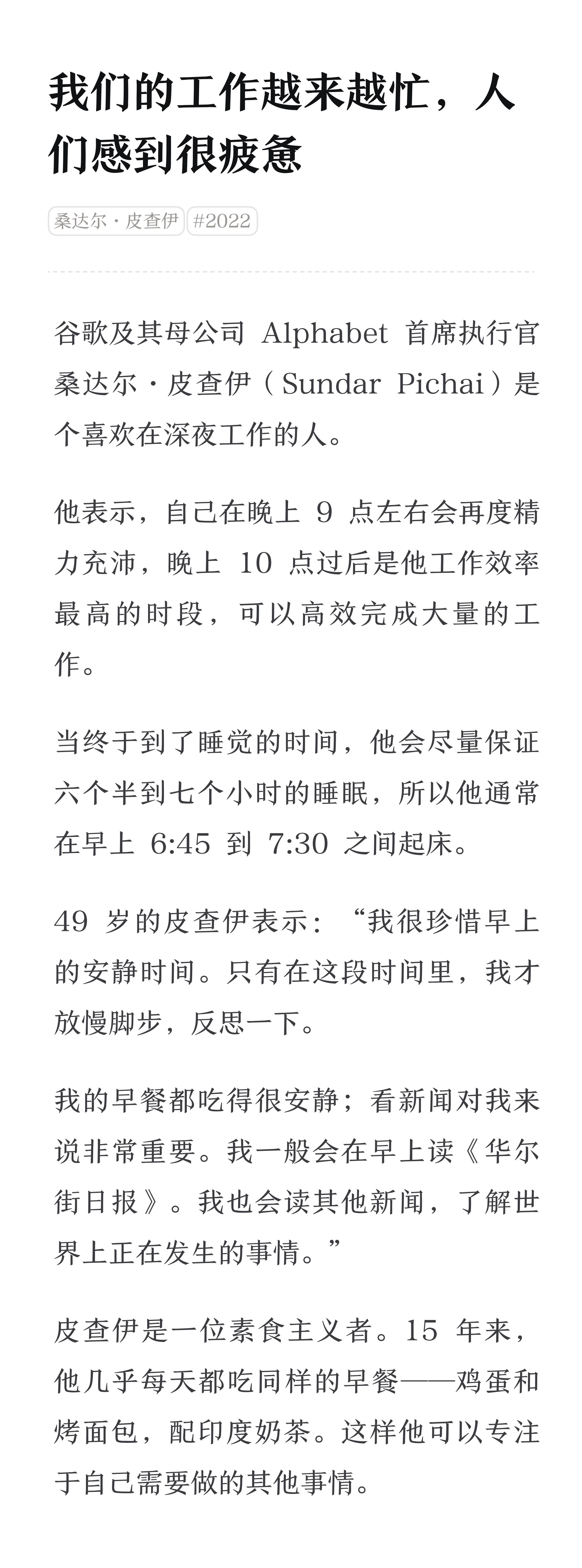 WSJ✖️桑达尔·皮查伊(2022年):我们的工作越来越忙,人们感到很疲惫