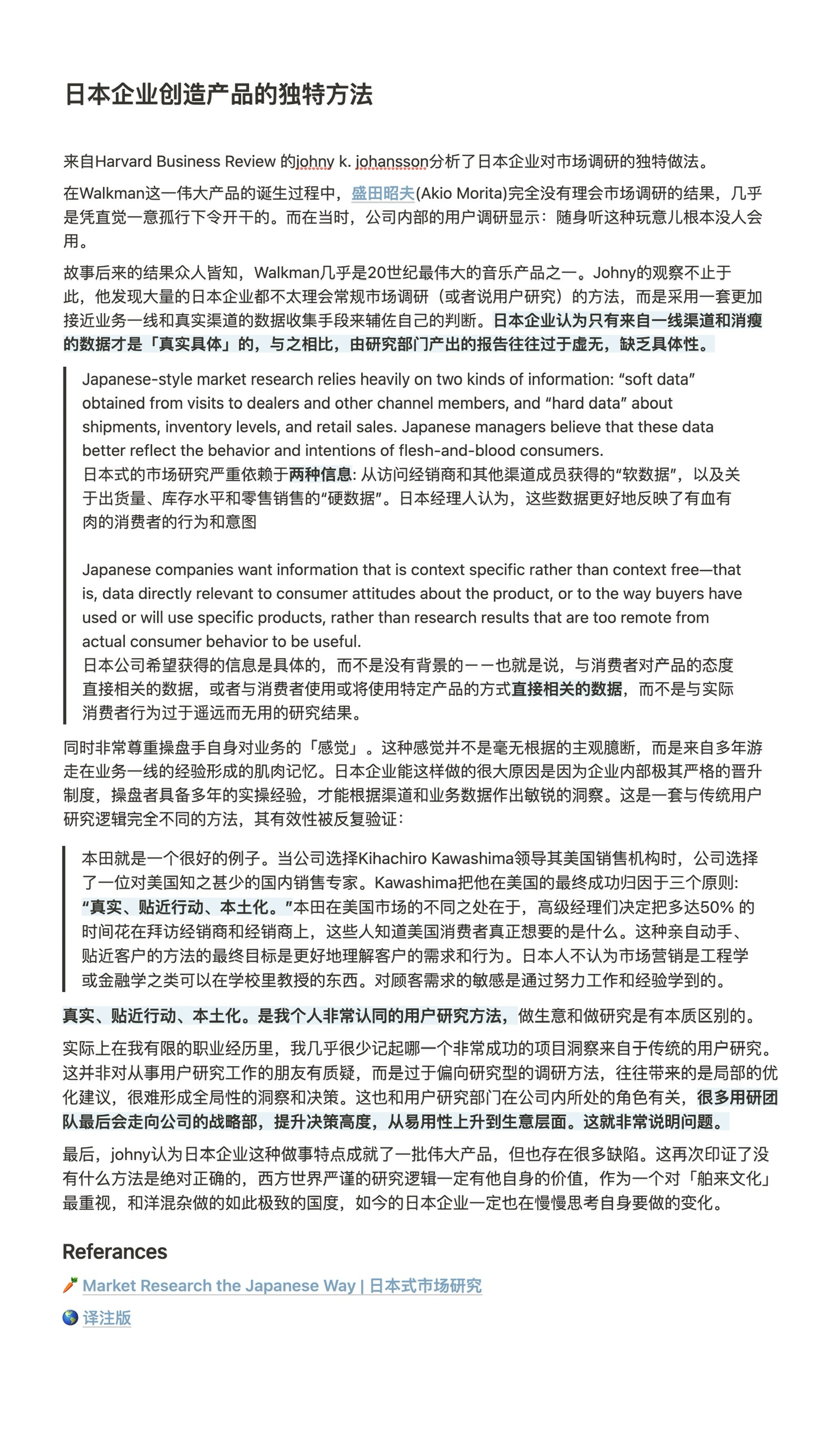 原文来自Harvard Business Review 的johny k. johansson,他分析了日本企业对市场调研的独特做法。这篇文章的可贵之处在于提供了另一种看待用户和市场数据的视角。