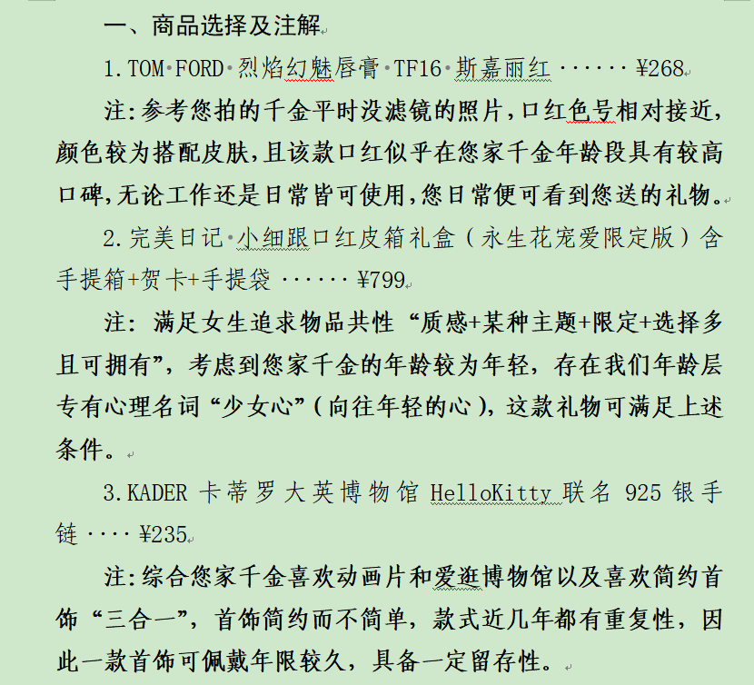 然后询问了一些领导女儿的信息,就整理出了一份报告,领导看完后让我打印出来,然后下班拿他的手机下单🥲