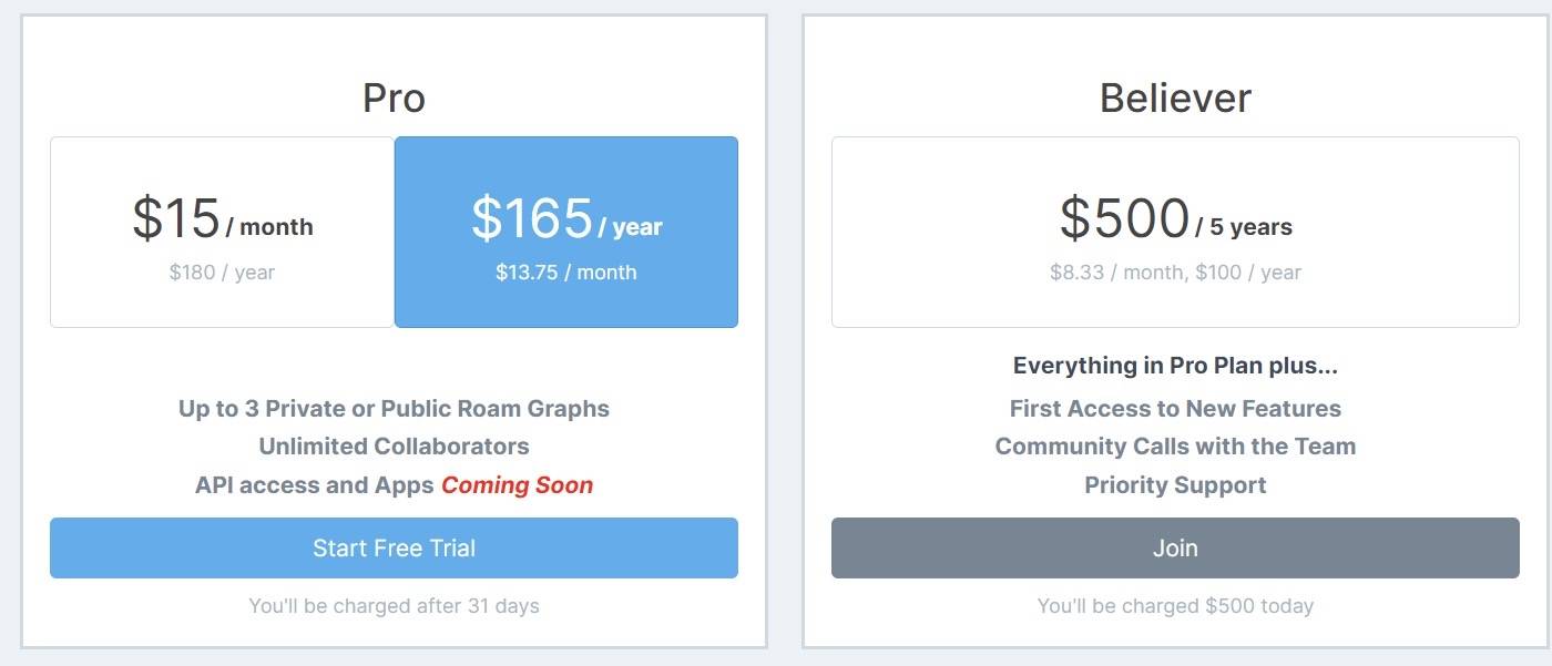 Roam Research 的收费选项里,有一项是 5 年期的,名字叫 Believer。以前不大懂,今天有点懂了 🤔