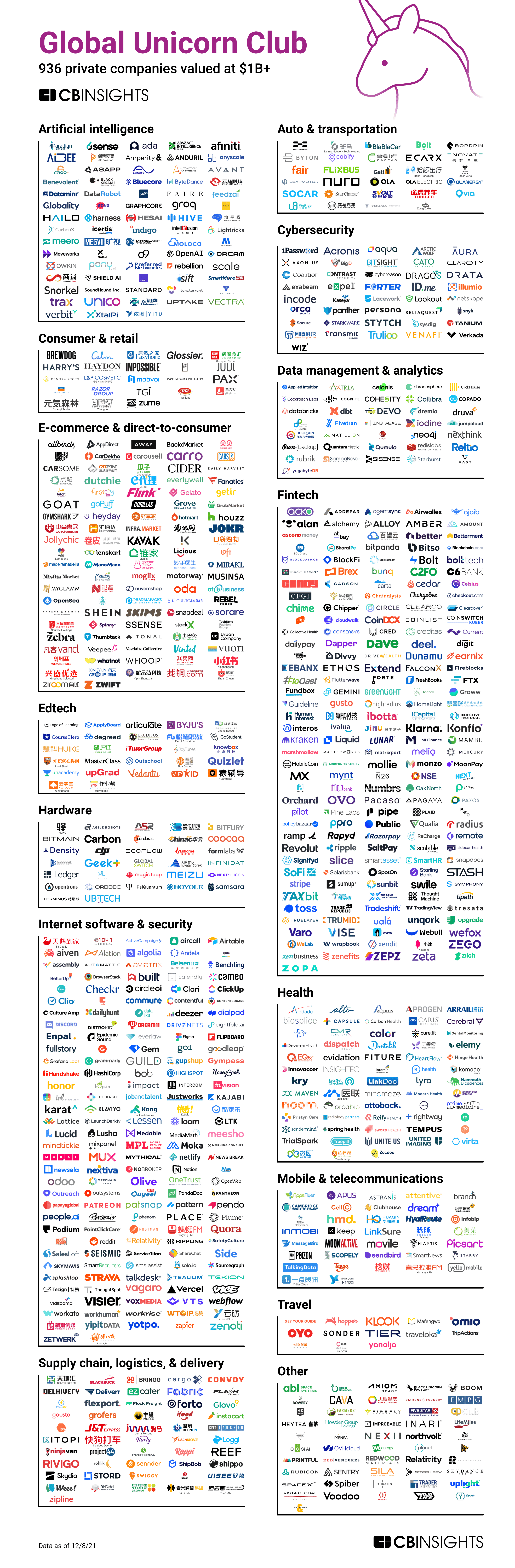 2021全球独角兽公司清单(Global unicorn club),共计936家。高清图来了~