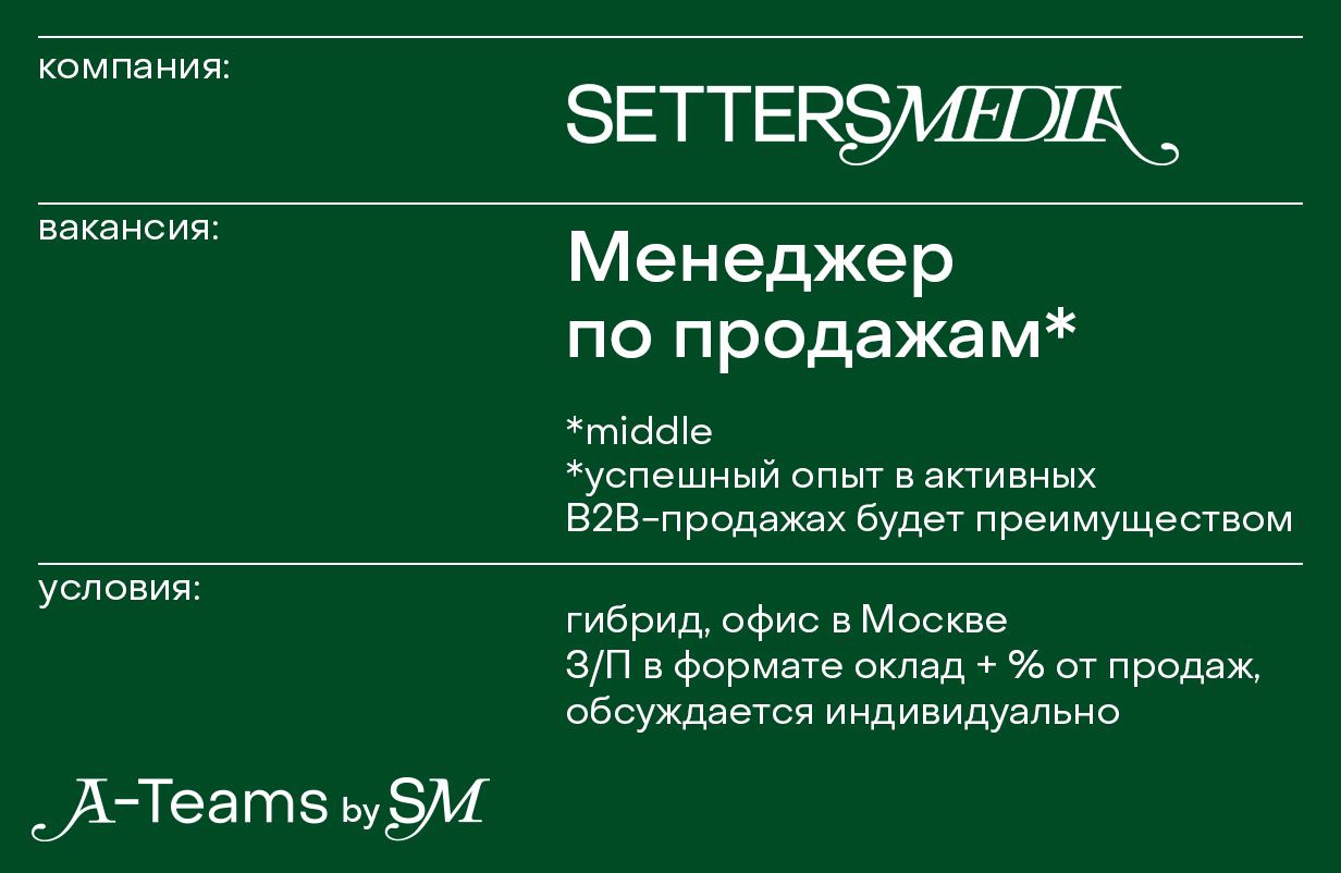 Откликнуться: на почту matveeva@setters.media с пометкой «Менеджер по продажам в SETTERS Media» в теме письма