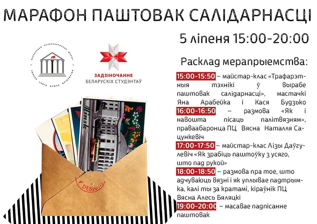 Анлайн-марафон паштовак салідарнасці ад Беларускай Праваабарончай Школы і Задзіночання Беларускіх Студэнтаў.