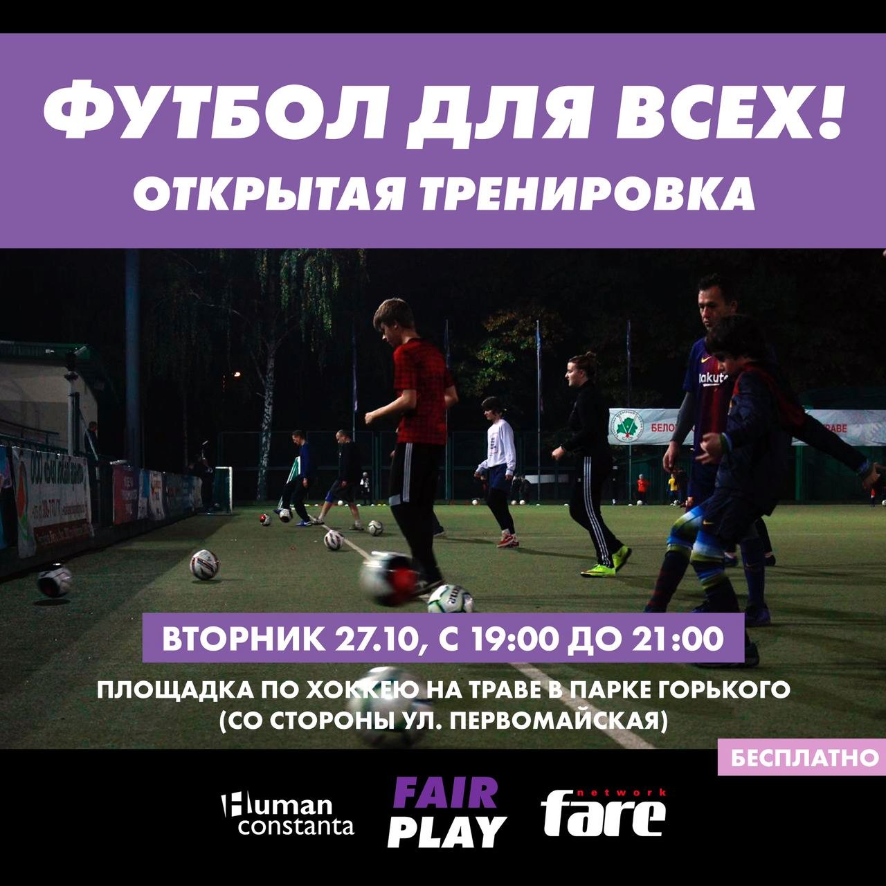 Приглашаем людей любого пола, гендера, возраста, национальности, с любой физической подготовкой и уровнем понимания футбола на открытую тренировку в Минске!