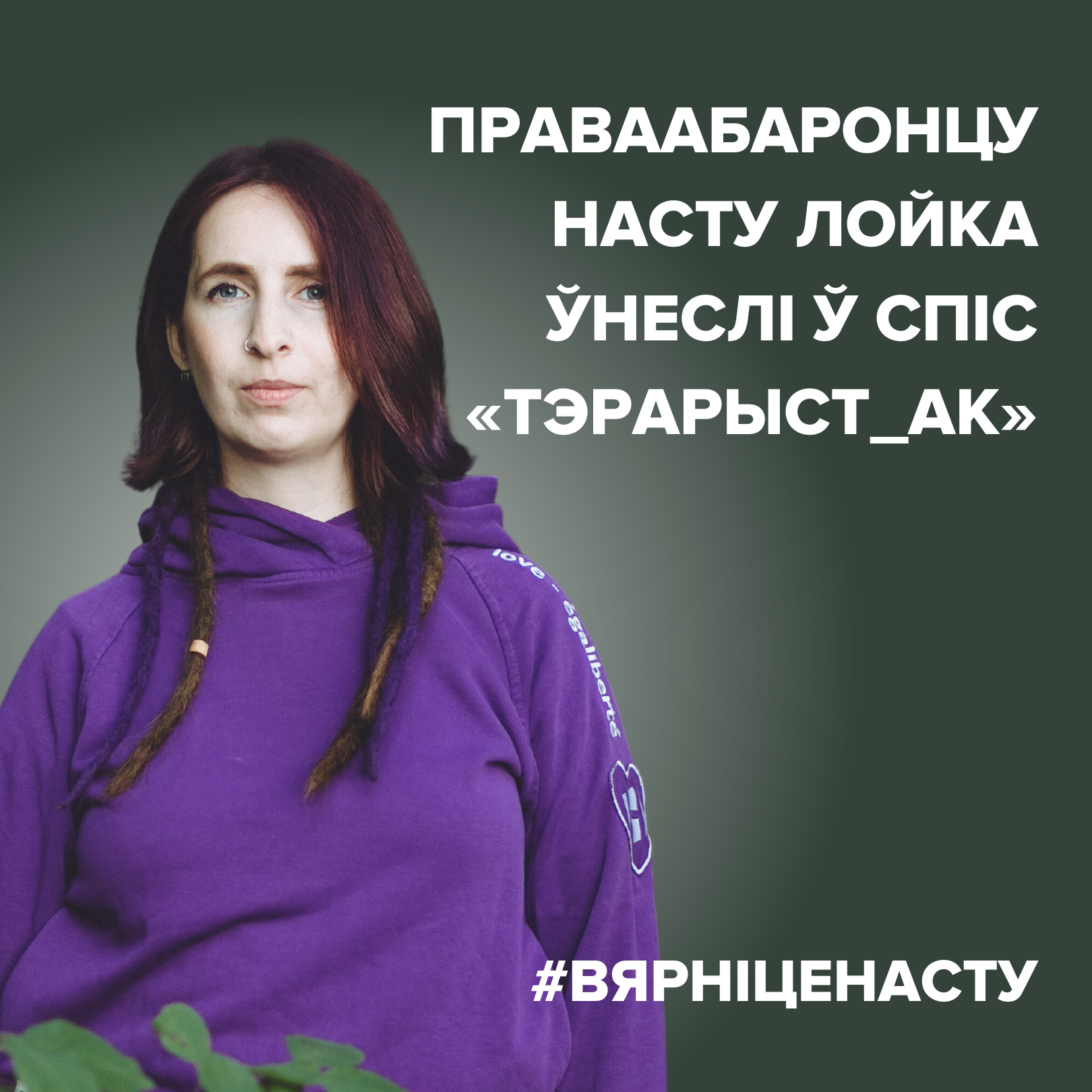 ❗️Мы заклікаем беларускія ўлады да неадкладнага і безумоўнага вызвалення Насты Лойка і асуджаем фізічныя і псіхалагічныя катаванні, якім Наста падвяргалася з боку дзяржаўных прадстаўні_ц. Арышт, катаванні і турэмнае зняволенне Насты Лойка з'яўляюцца помстай беларускага ўрада за яе мірную і законную праваабарончую дзейнасць.