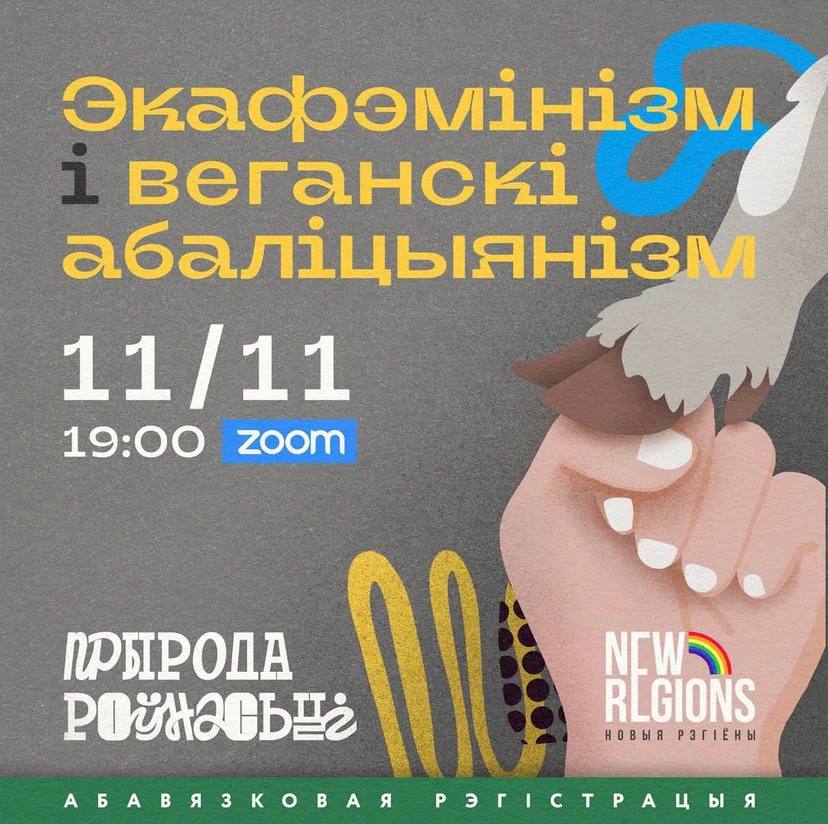 А ўжо 11.11.2023 нашыя партнёры інтэрсэкцыйная фем ЛГБТК+ ініцыятыва Новыя Рэгіёны ладзяць імпрэзу "Экафэмінізм і веганскі абаліцыянізм"