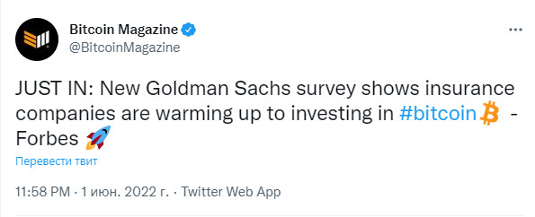 🗓Новое исследование Goldman Sachs показывает, что страховые компании готовы инвестировать в биткоин - Forbes