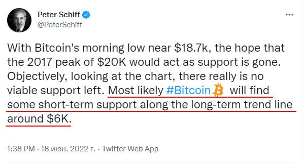 📉Питер Шифф предсказывает дно биткоина на $6000