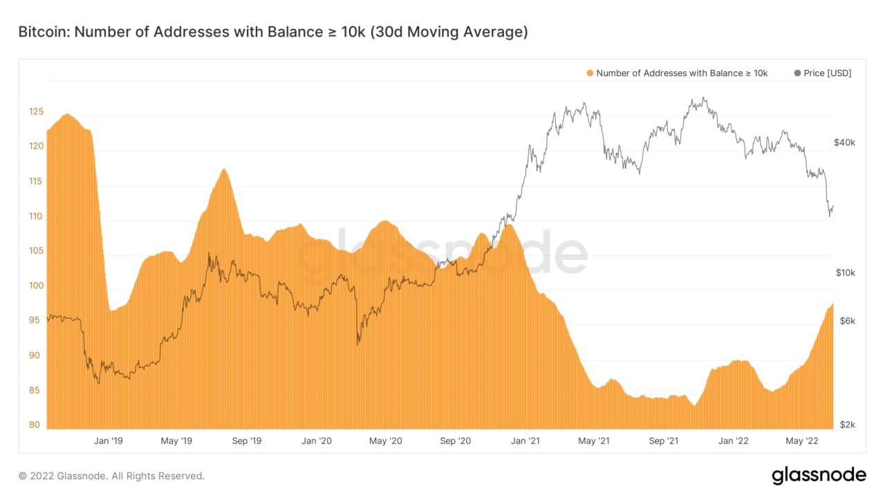 📊Биткоин-киты с балансом более 10 000 монет непрерывно покупают BTC с апреля