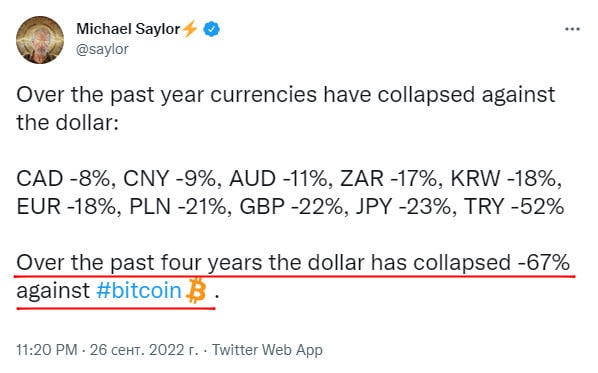 Майкл Сейлор тролит все фиатные деньги мира