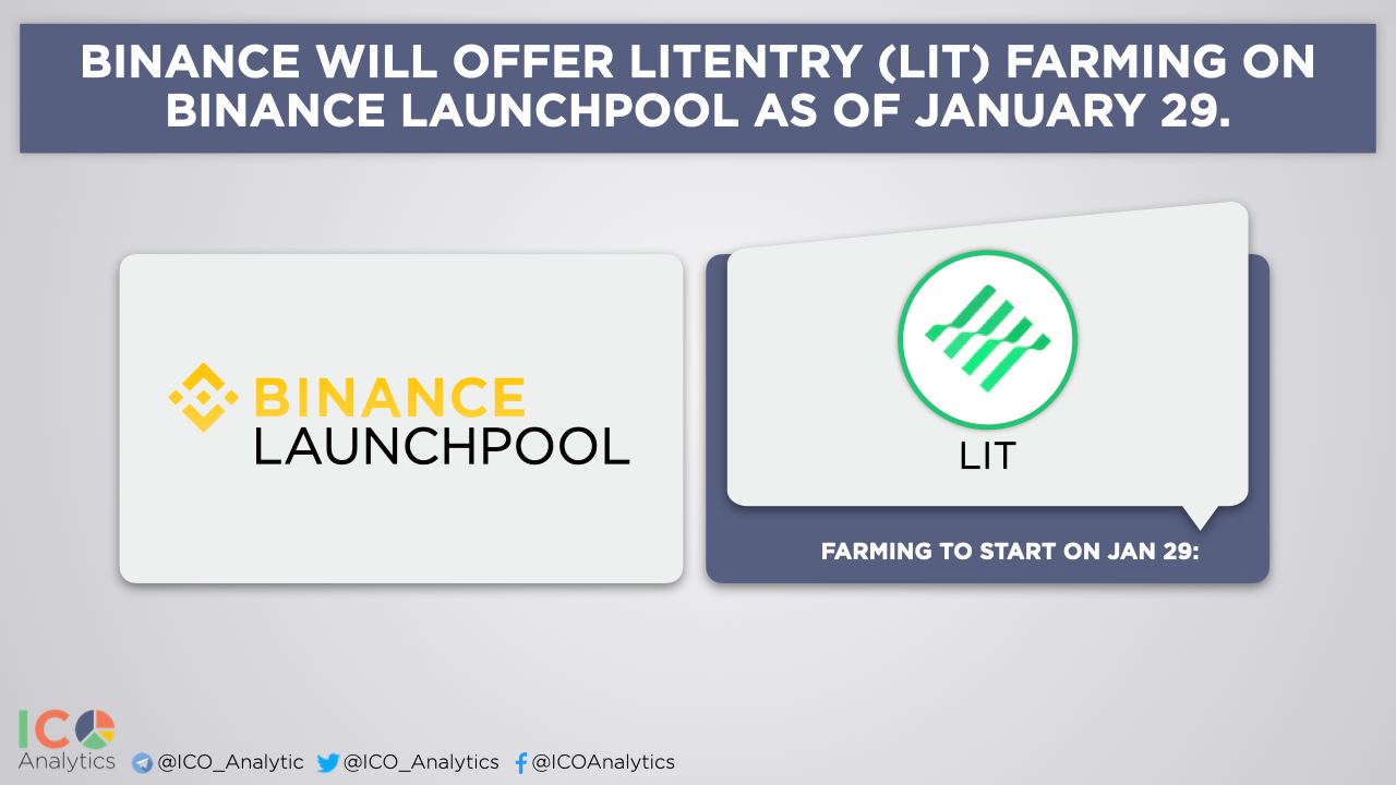 ββBinance will offer Litentry (LIT) farming on Binance Launchpool as of January 29. Users will be able to stake their BNB, BUSD and DOT into separate pools to farm LIT tokens over 30 days. Binance will list LIT into the innovation zone on February 4th and open trading with LIT/BTC, LIT/BUSD and LIT/USDT trading pairs.
