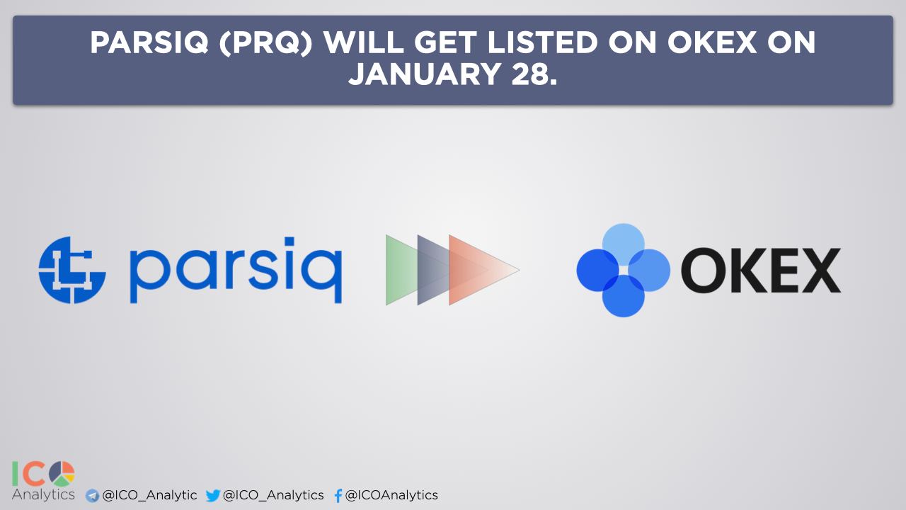 ββPARSIQ (PRQ) will get listed on OKEx on January 28. PRQ/USDT trading pair will go live at 10:00 am (UTC).