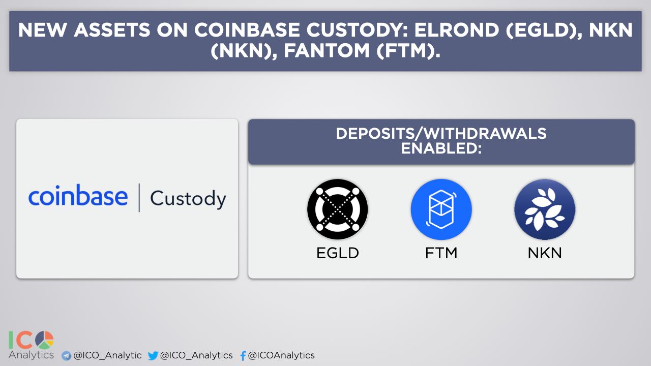 ββCoinbase Custody now supports deposits and withdrawals for Elrond (EGLD), NKN (NKN), Fantom (FTM).