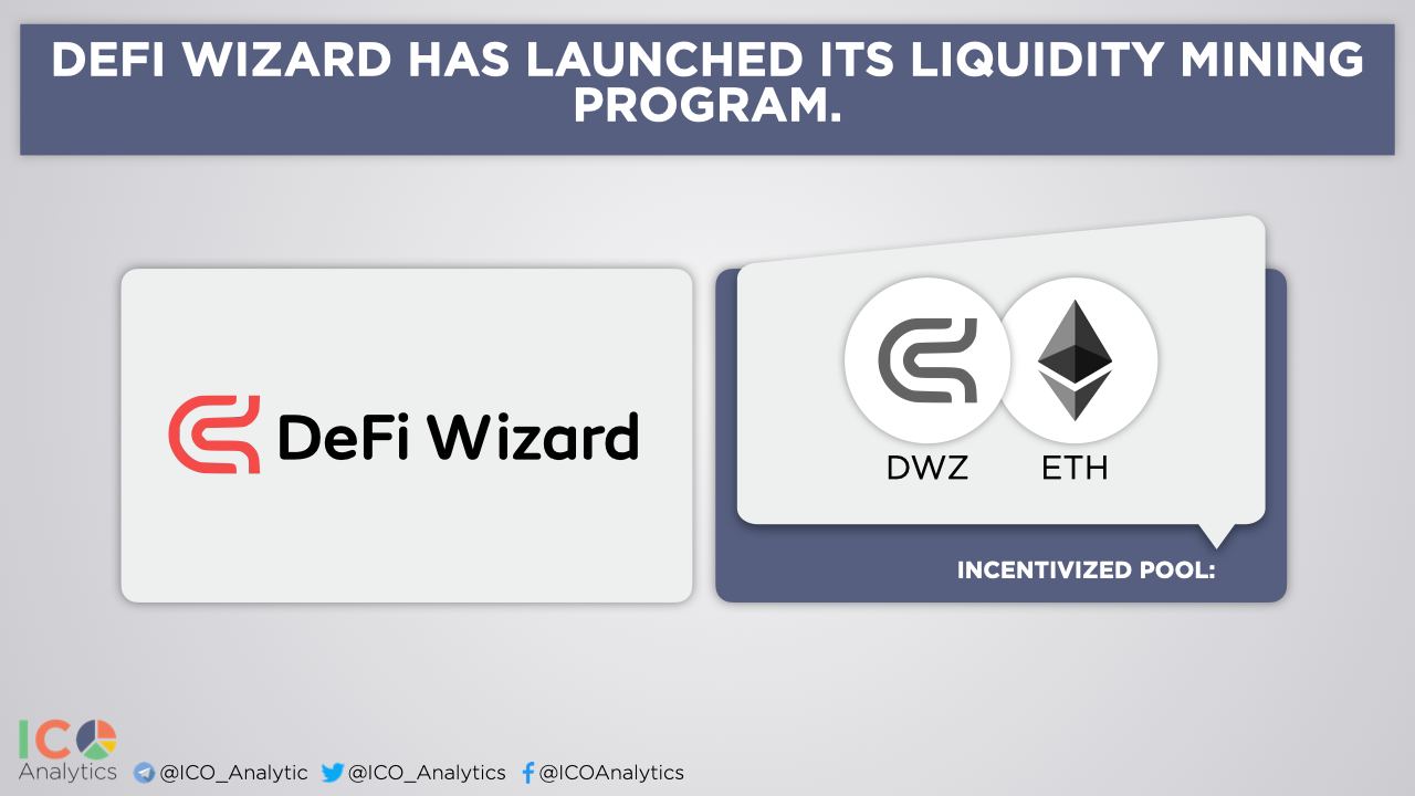 ββDeFi Wizard has launched its liquidity mining program. Users who provide liquidity to DWZ/ETH pairs will earn DWZ token rewards. A total of 40,000 DWZ tokens will be distributed to LPs over a period of 5 months.