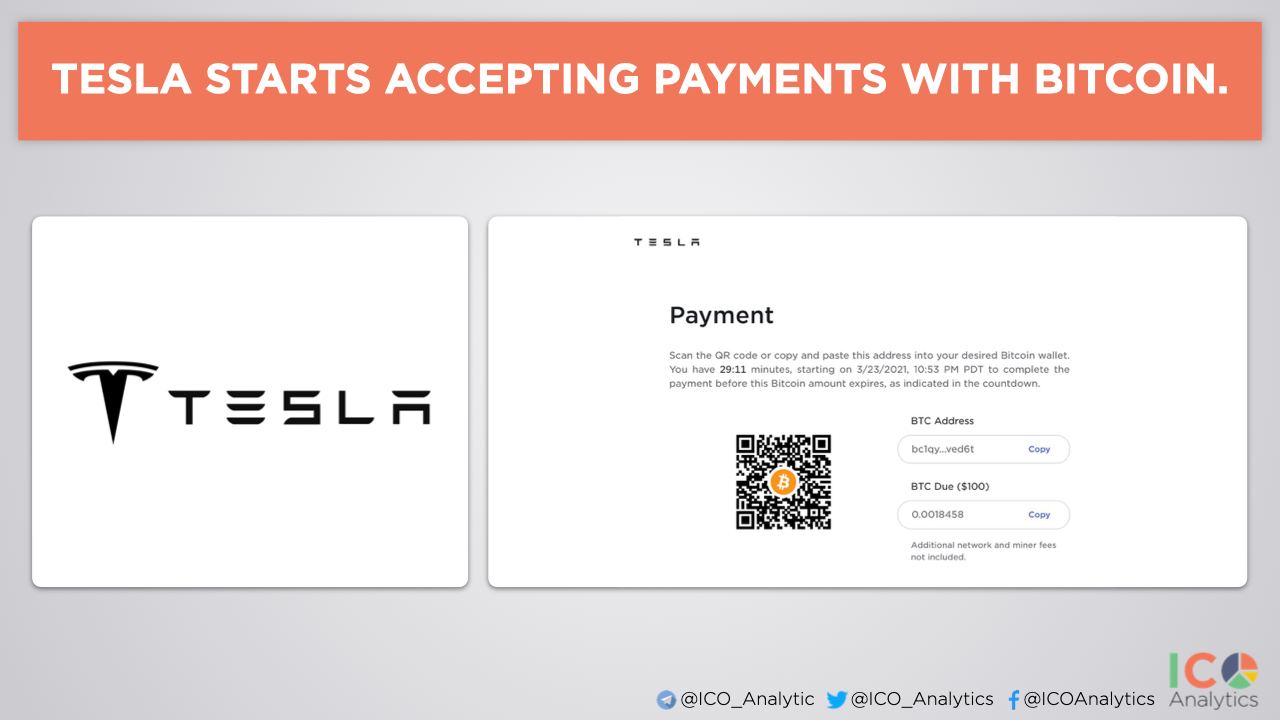 ββTesla starts accepting payments with Bitcoin. This payment is supported for customers in the continental U.S. atm. According to Elon Musk: