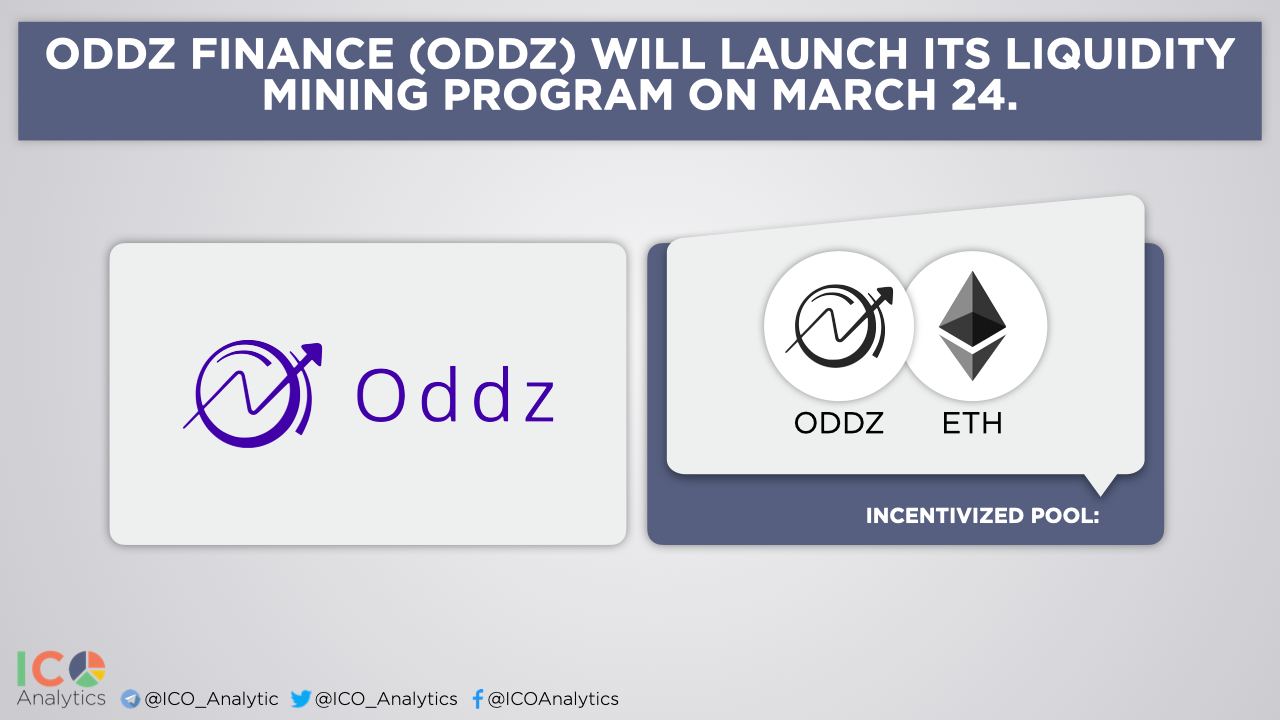 ββOddz Finance (ODDZ) will launch its liquidity mining program on March 24. Users that provide liquidity to Uniswap/ETH pair will earn ODDZ token rewards. $250k worth of ODDZ tokens will be rewarded to ODDZ/ETH Uniswap LPs during 150 days.