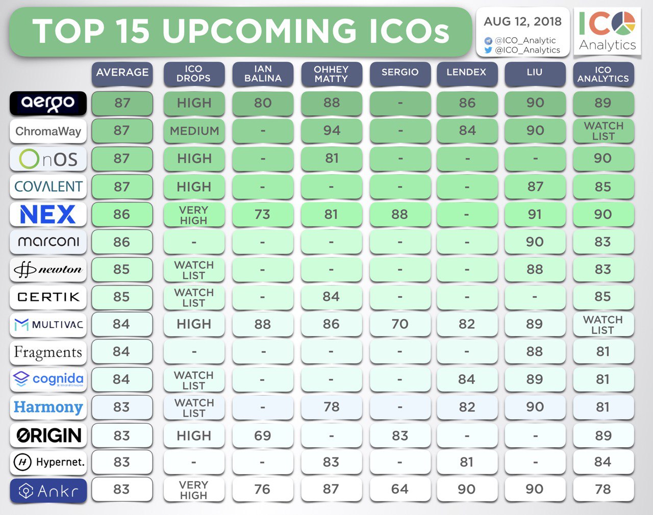 ββUpdated list of TOP 15 upcoming ICOs. Check out the full list of ICO projects with the scores in our spreadsheet by the link below.