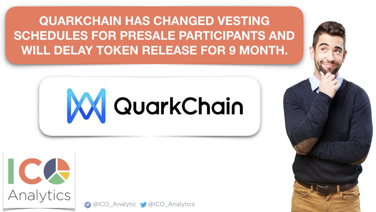 ββQuarkChain has changed vesting schedules for presale participants and will delay token release for 9 month. The new token release plan applies to all undistributed parts of private sale purchasers, team, and foundation.
