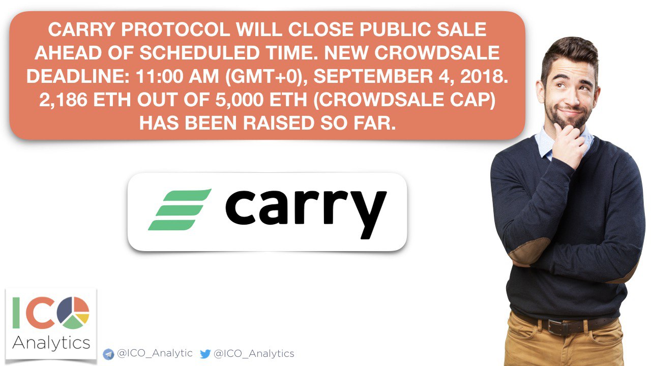 ββCarry Protocol will close Public Sale ahead of scheduled time. New crowdsale deadline: 11:00 am (GMT+0) on September 4, 2018.