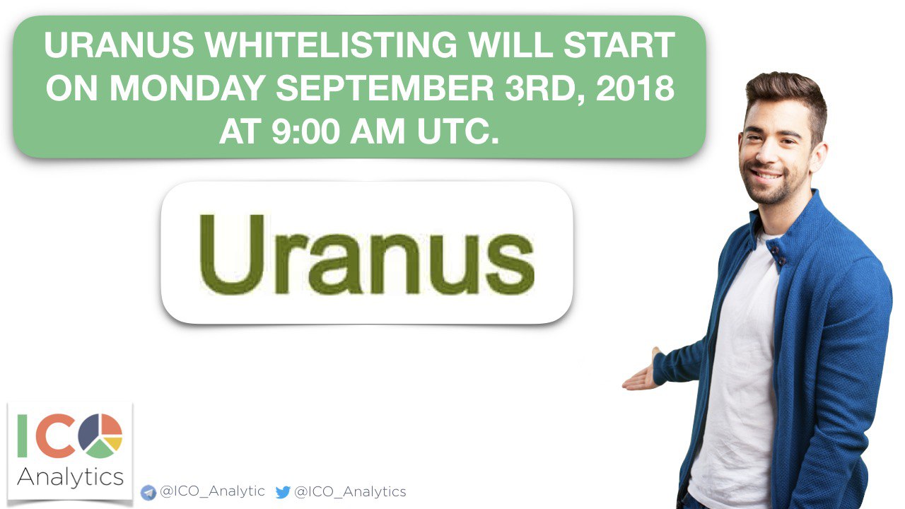 ββUranus whitelisting will start on on Monday September 3rd, 2018 at 9:00 am UTC. In order to proceed with you will need to contact the bot @Uranus_whitelistbot in Telegram and follow its instructions. In order to get whitelisted participants should pass the quiz.