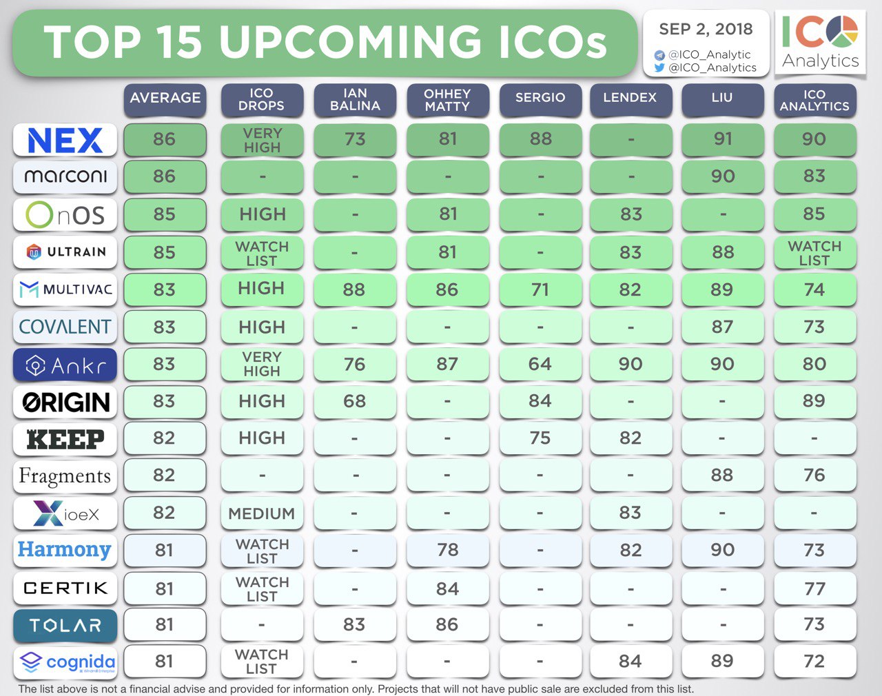 ββUpdated list of TOP 15 upcoming ICOs. Check out the full list of ICO projects with the scores in our spreadsheet by the link below.