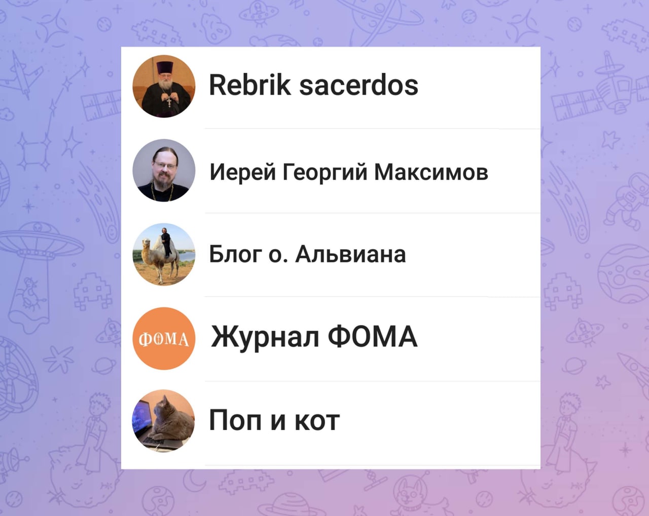В этот раз я решил опубликовать список каналов тех батюшек, с которыми тесно общаюсь или дружу в реальной жизни