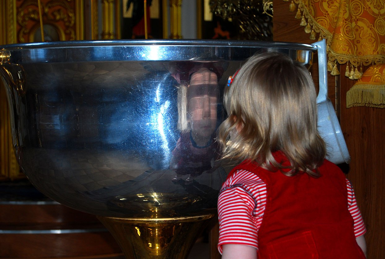 После первой части крещения, которая называется «оглашение», я предложил родителям дать таки ребенку возможность побегать по крестилке пока совершается освящение воды.