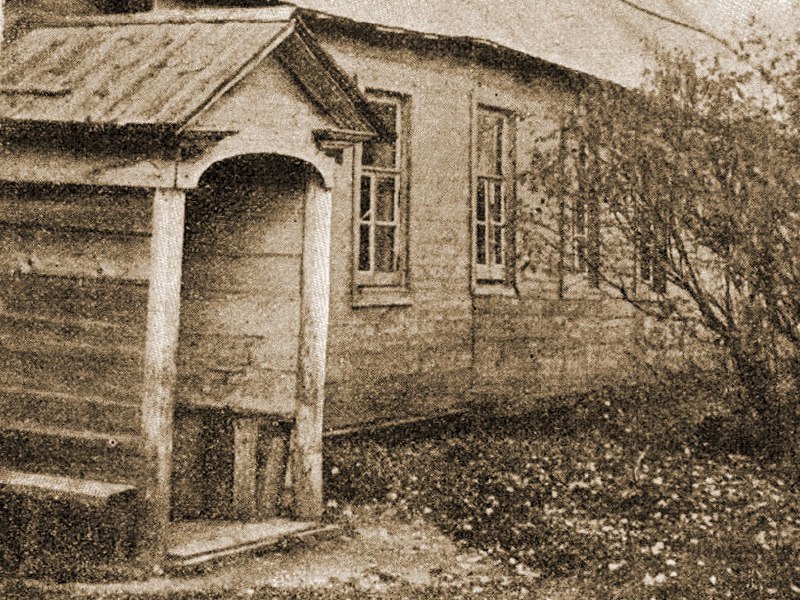 Вытянутая будка с треугольной крышей и тремя ступенями внизу исполняла роль крыльца. Вся хижина была выкрашена в темно зеленый цвет таким толстым слоем, что казалось убери эту краску и все развалится.