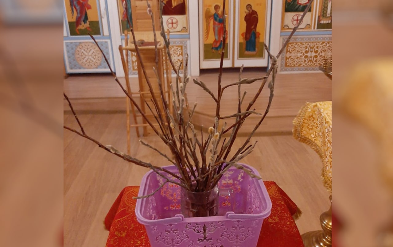 Более того, батюшке успели с Тундры привести вербы, несколько поломанных веточек, и они за ночь в тепле распустились, ту фотографию, что прикреплена к посту прислал о. Иоасаф.