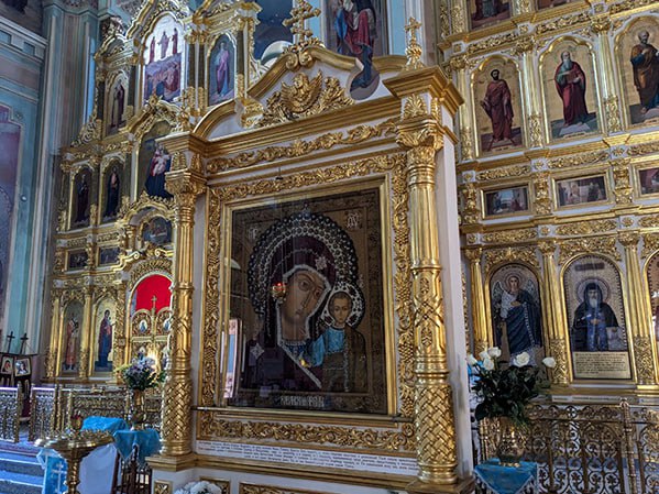 Как мне удалось узнать, у этой женщины есть дочь, которая родилась с серьезными дефектами по зрению, и весь отроческий период была практически слепой. Ее мама, украшая икону, молилась за свое чадо, и глазки больной девочки постепенно восстановились. После Фотиния уже с помощниками подобным образом украсила центральный иконостас, а ее девочка тем временем совсем повзрослела, встретила молодого человека и благополучно вышла замуж.