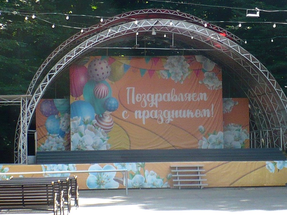 На городской площади возле Дома культуры располагалась небольшая сцена под навесом. Здесь проходили главные торжества в праздничные дни, в обычные же, трудовые, место было тихим и малолюдным. Разве что служащие местного драмтеатра, находящегося тут же, и случайные прохожие изредка нарушали степенную картину.