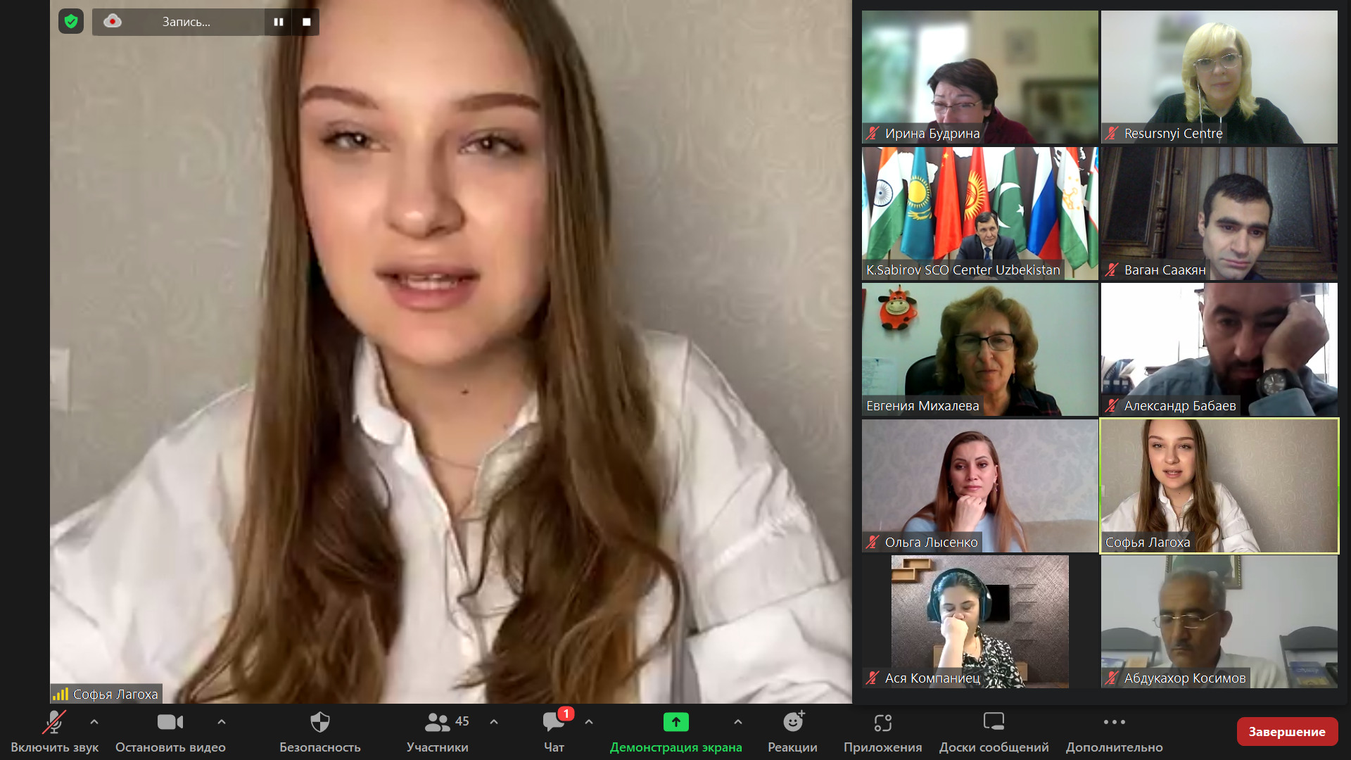 Сегодня для зарегистрировавшихся участников конкурса стартовал четырёхдневный образовательный интенсив. В первый день перед участниками выступили ― Председатель Совета ООО «Ассамблея народов России», член Совета при Президенте Российской Федерации по межнациональным отношениям Светлана Смирнова, исполнительный директор АНО «Центр поддержки и развития общественных инициатив "Креативная дипломатия"» Дарья Божко и директор Центра народной дипломатии ШОС в Узбекистане Кабулжон Сабиров.