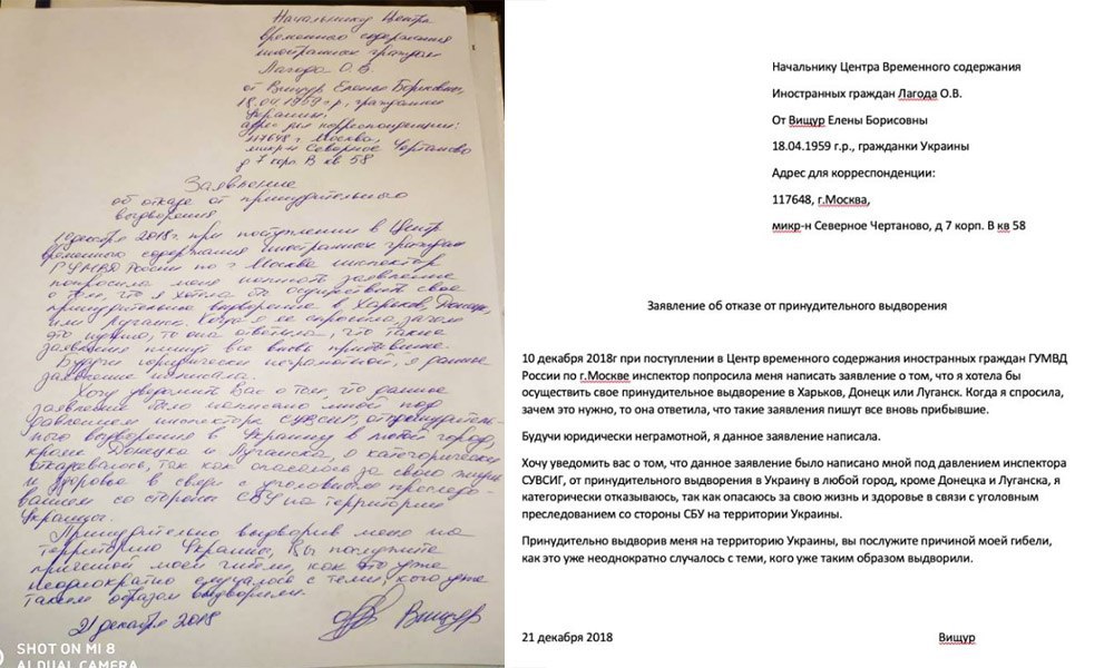 Виновата? Ну посадите ее на 15 суток. А потом еще на 15. Пока не поймет, что надо выправить документ. А коли уж высылаете, то дайте возможность уехать в Белоруссию, Казахстан, Армению, да хоть в Южную Осетию. Нет, даже в Донецк не отпускают. Словно перешла она дорогу кому-то очень злопамятному. Или того хуже - в соцсетях полно «свидетельств» ее сотрудничества с СБУ.