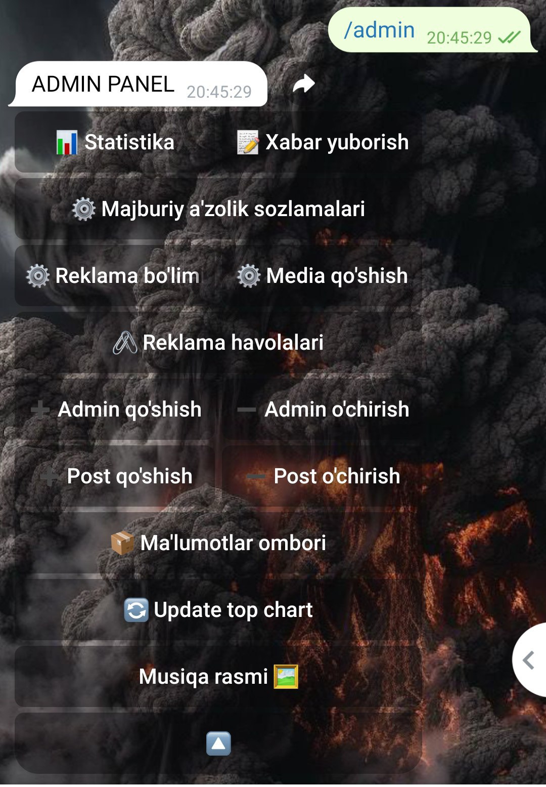 โ Salom men dasturchiman. Python dasturlash tilida mukammal telegram botlar yarataman.โจ๏ธ Python - bu dasturlash tili hisoblanib Twitter, Facebook, Instagram va shu jumladan Telegram messenjerlarida bu tildan keng foydalanilgan. Shuning uchun men aynan Python tilini tanladim va o'z ish faoliyatimni boshladim. Buyurtmalar 24 soat ichida tayyor bo'ladi, to'lovlar oldindan. Iltimos buyurtma berayotganda to'liq ma'lumot yozib qoldiring..๐ Bot juda kuchli serverda ishlaydi๐ก Serverdan uzulmaydi, to'xtatilmaydiโ ๏ธ Botingiz @ilonuz kanaliga joylanadi๐ช Kanal tomonidan litsenziya beriladi๐ฑ Admin panel takrorlanmas bo'ladi๐ฆ Buyurtma berish: @ilondev