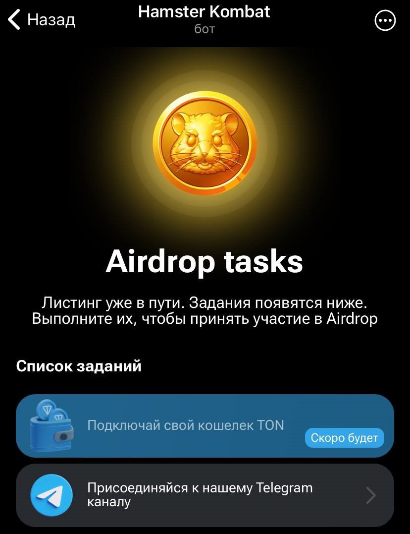 В разделе Airdrop в Хамстере скоро будет доступна функция привязки кошелька.