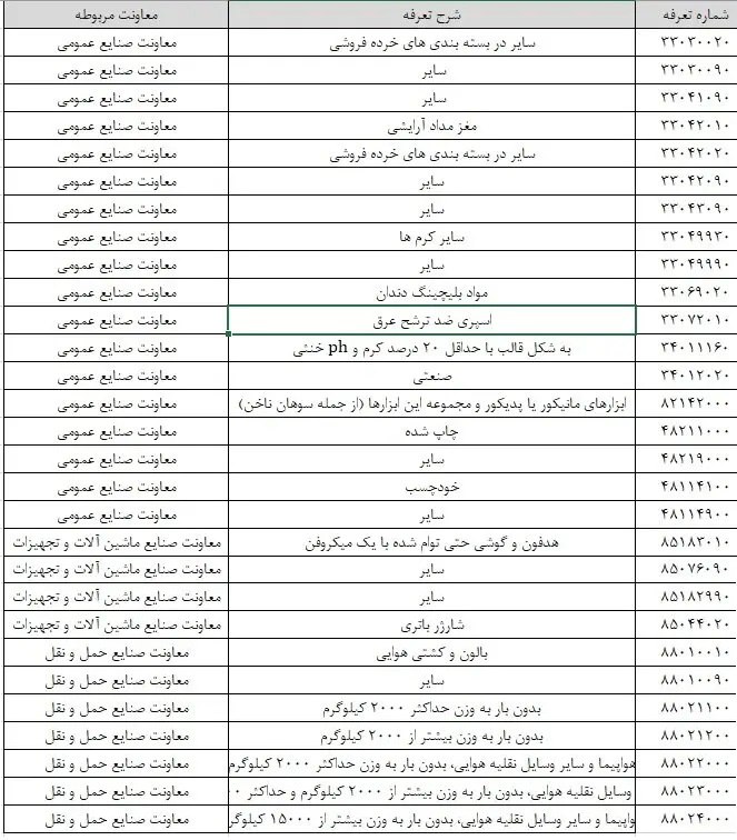 در جدول زیر فهرست این ۲۹ قلم کالا آمده است.
