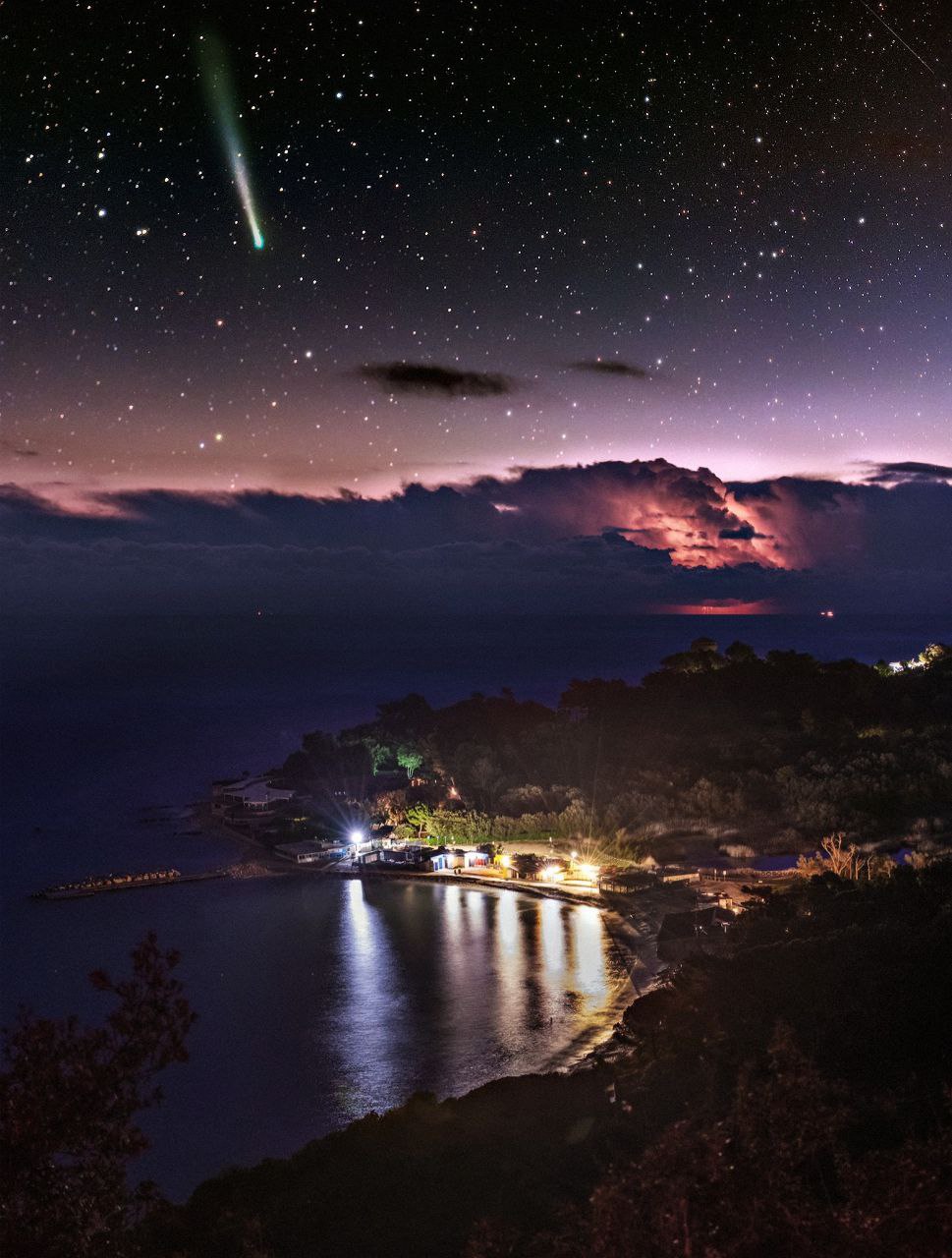 Комета Леонарда и грозовой фронт в небе над Портоново, Италия, 10 декабря © Андреа Амичи
