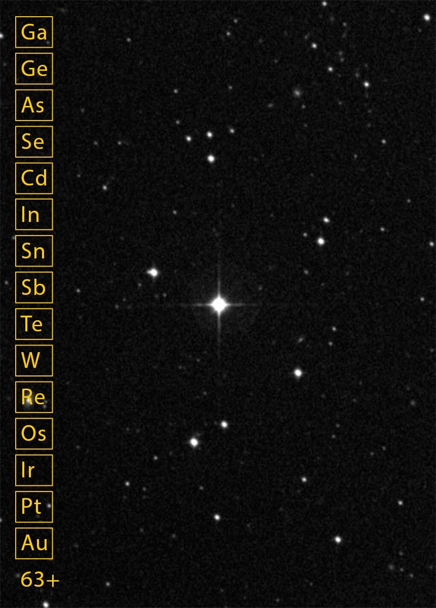 Астрономы отыскали звезду с самым разнообразным химическим составом среди всех объектов за пределами Солнечной системы. Ей оказалась звезда HD 222925 из гало Млечного Пути, которая содержит 63 элемента, 42 из которых рождены за счет r-процесса. Возможно, в прошлом светило было частью карликовой галактики или звездного скопления. Препринт работы доступен на сайте arXiv org.