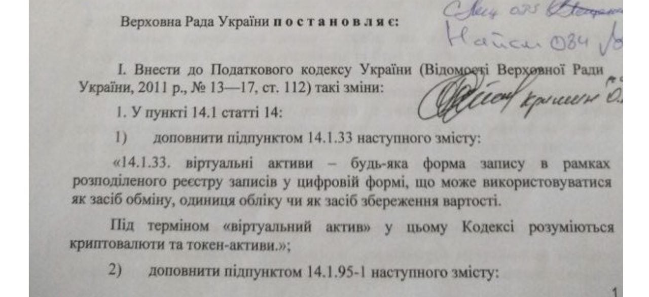 В Верховную Раду Украины передан законопроект о классификации цифровых активов. Появится новый термин «виртуальные активы», которые делятся на криптовалюты и токен-активы. Также, до 2024 года депутаты намерены ввести налог для физических и юридических лиц на оборот криптовалюты в размере.