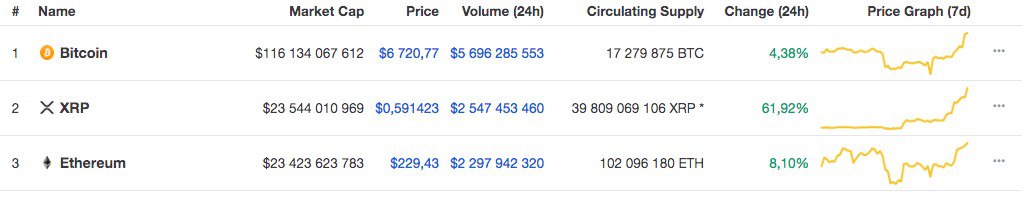 🚀+37% на Ripple за 10 дней. Это конечно не $589 за XRP к концу года, как заявляют некоторые оптимисты, но тоже неплохо, мы считаем.