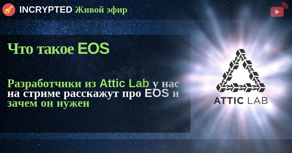 Attic Lab - это украинские блокчейн и финтех разработчики. Партнеры биржи CODEX, open-source решение для e-банкинга openbankIT и стейкинг сервис AtticPool. Входят в ТОП-5 блок продьюсеров EOS. Эти ребята придут к нам на стрим в пятницу и мы говорим про:
