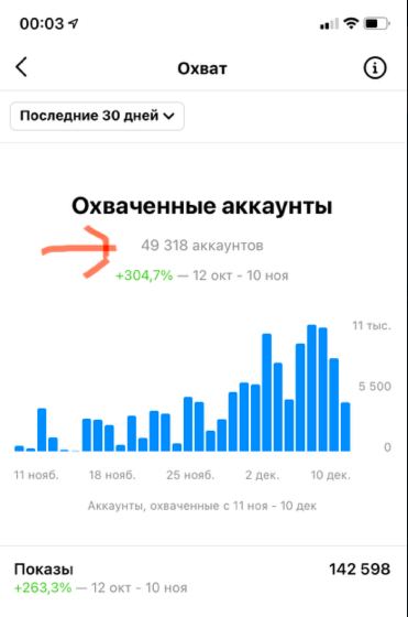 При 14 тыс подписчиков в инстаграм получили месячный охват в 49 000 уникальных просмотров