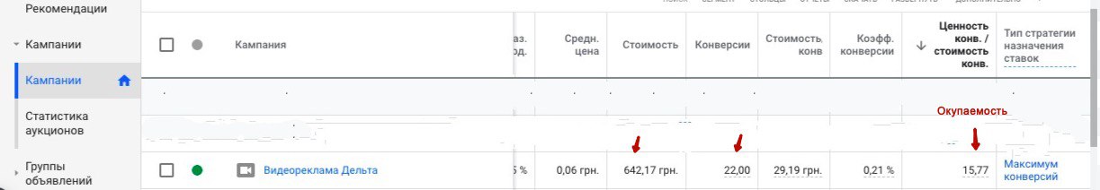 Посмотрим, как ролик будет работать дальше, возможно гугл как-то усовершенствовал свои алгоритмы и показывает ролик максимально заинтересованным людям, ведь цель кампании - “Максимум конверсий”.
