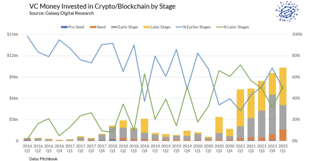 Highlights from the recent Galaxy Digital Research report (Crypto & Blockchain Venture Capital β Q1 2022):