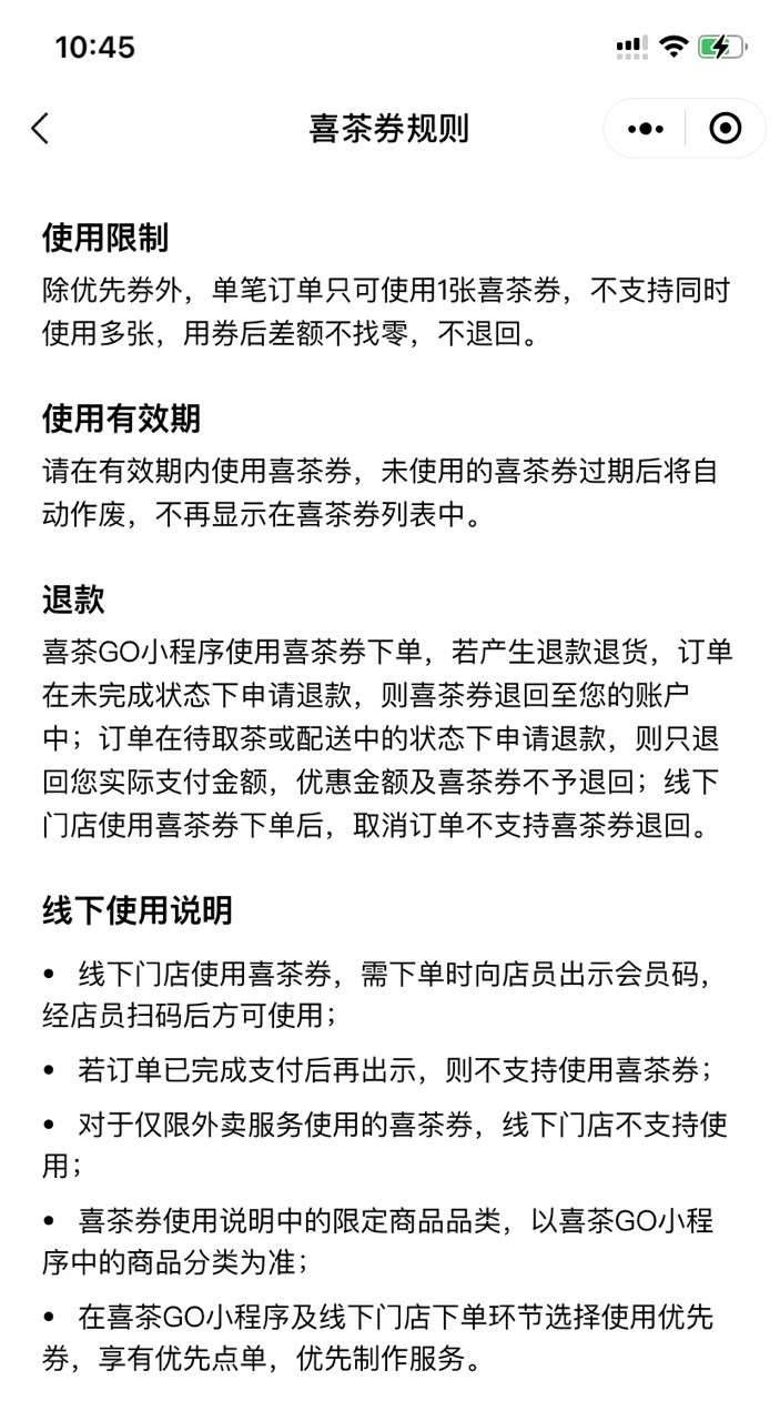在喜茶,买了5.5的气泡水,用了50元的券,用完发现这50的券就直接没了