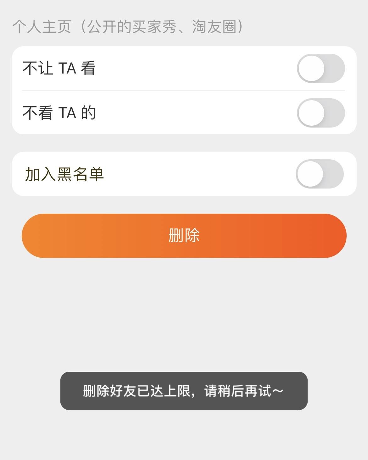 某次淘宝弹出个推荐好友的弹窗,没注意按到了一键通过,加了50个陌生人,天天给我发各种活动和小游戏链接。